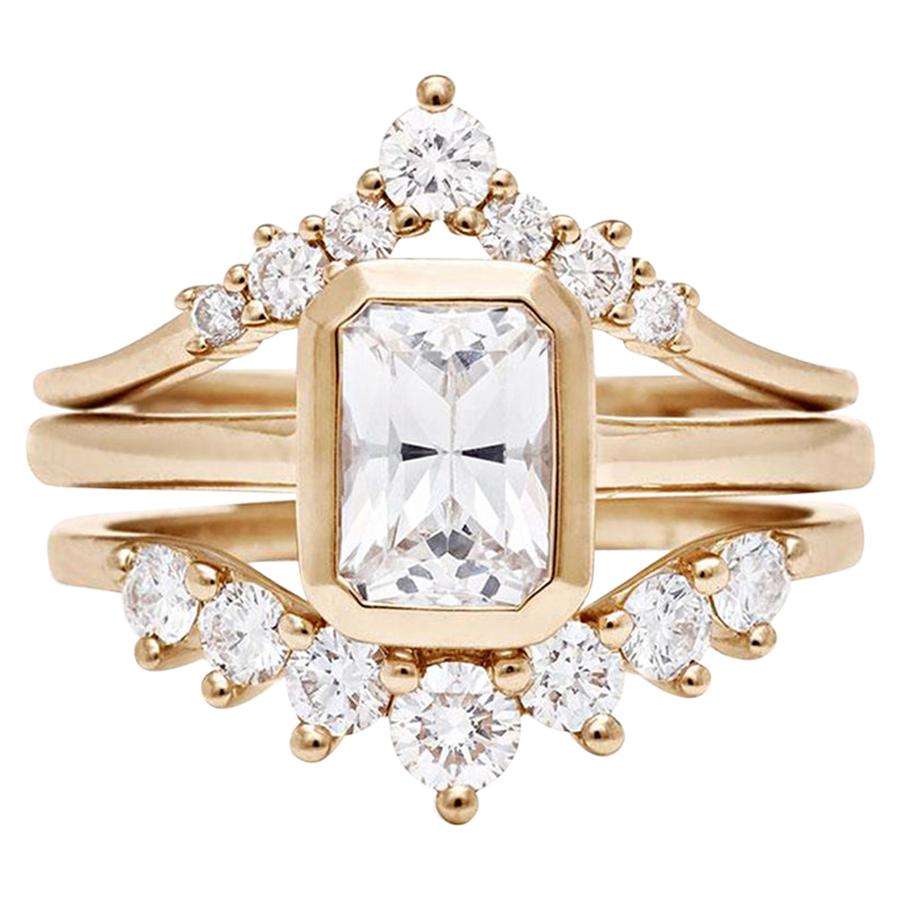 White Topaz Triple Wedding Ring Set -engagement Ring And Two Recycled www.